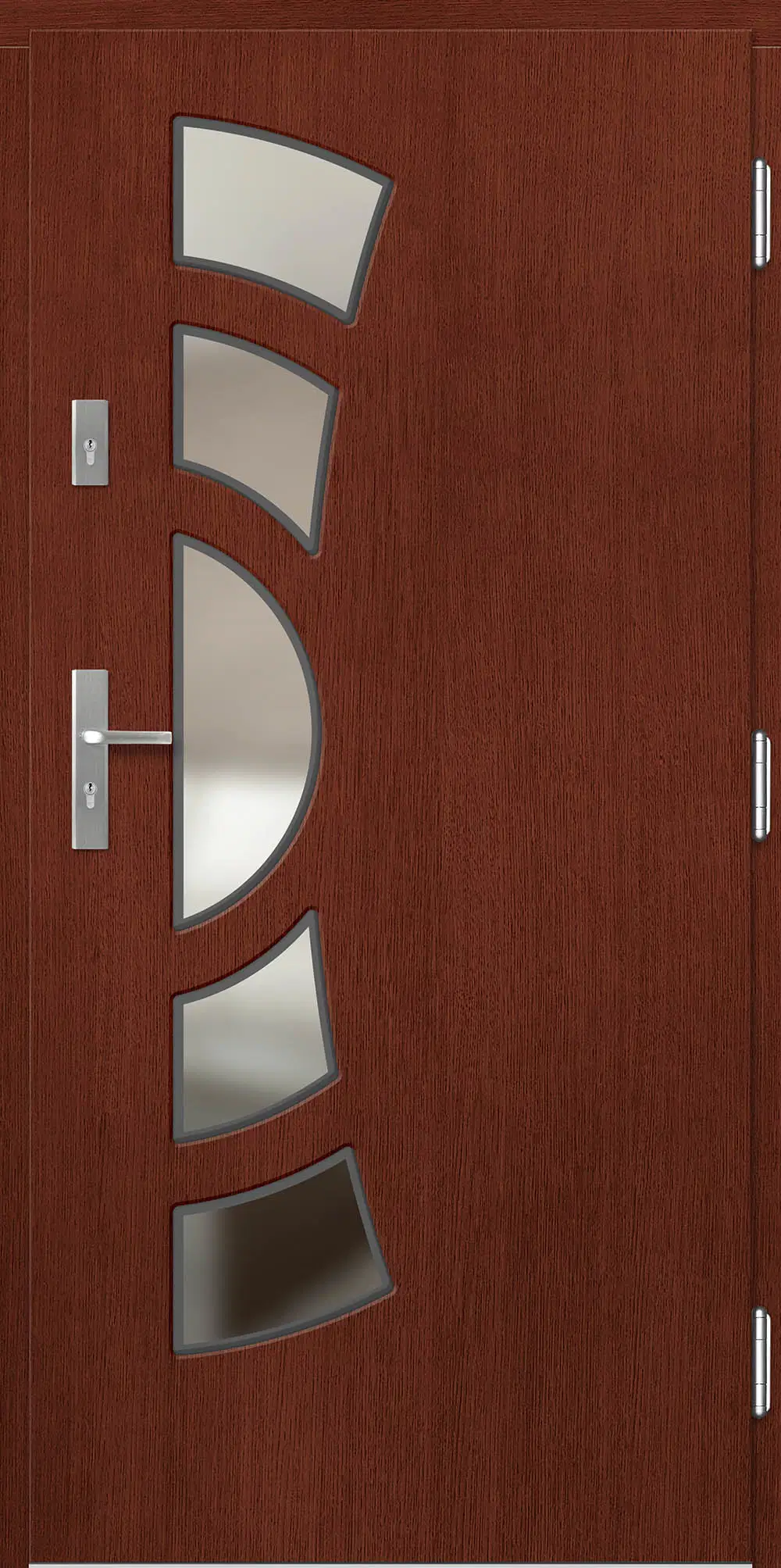 Leírás: Ezt a termékcsaládot modern mart formák és üvegezés jellemzi. A modellek geometriai ábrákon alapuló következetes mintázattal vannak ellátva.