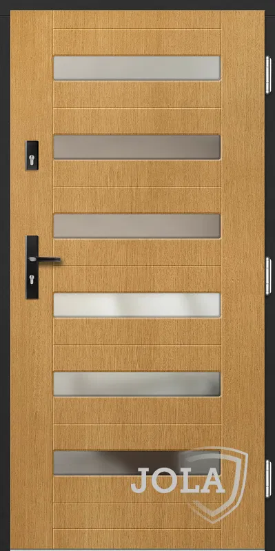 Kivitelezés: Tömítés a szárnyban és a tokban, betörésgátló csap a zsanér oldalán, a szárny külső burkolata vízálló rétegelt lemezből készült, a szárny belső szerkezete poliuretán habbal töltött méhrács.