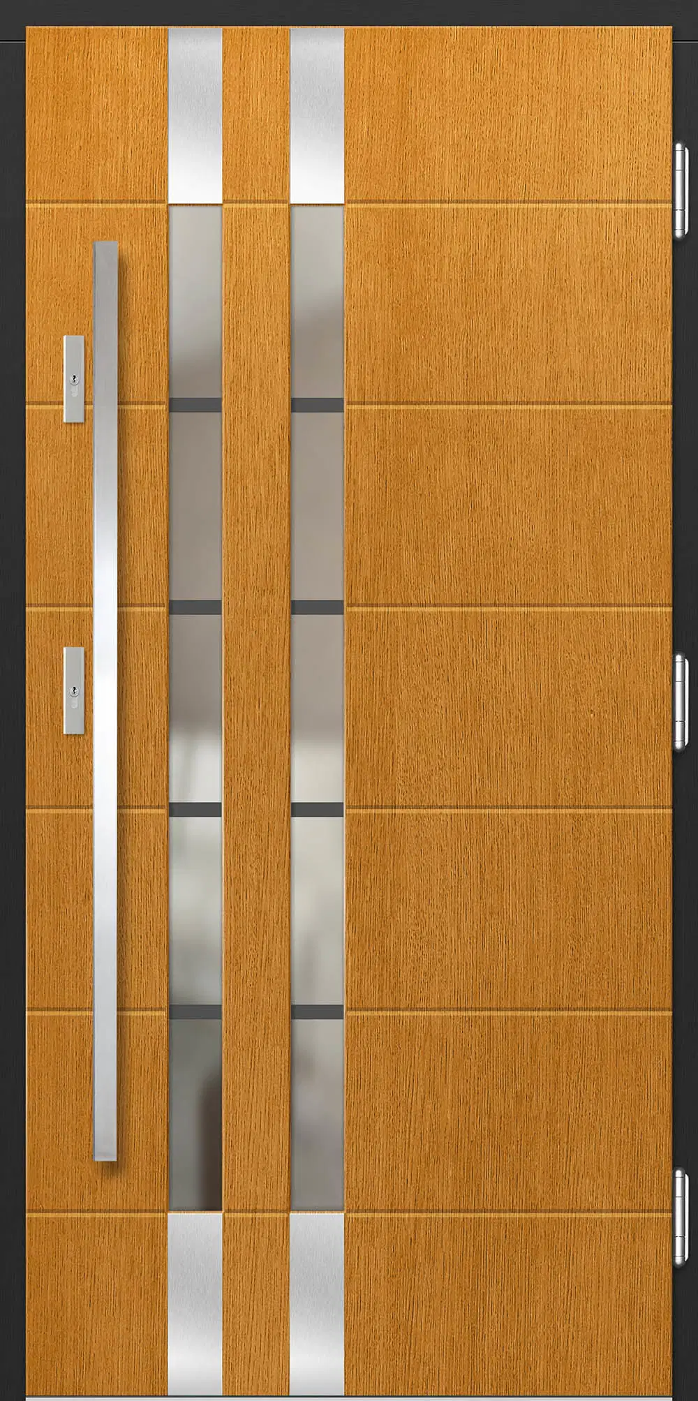 Leírás: A nemes szálcsiszolt alumínium a természetes fával együtt kiváló dizájnt képez. Az Inox betét ezenkívül védi az ajtó felületét a külső károsodásoktól.