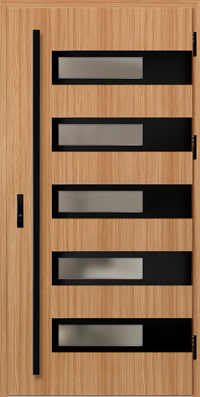 | Szárny és szárny merevítése: | PVC furnérral borított horganyzott acéllemezből, négyoldalas falccal, ragasztott fa kerettel, PUR habbal kitöltött ajtószárny |