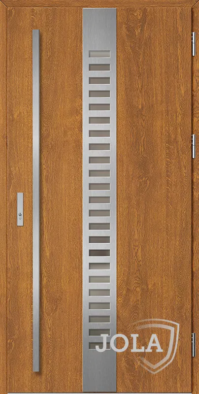 | Szárny és szárny merevítése: | PVC furnérral borított horganyzott acéllemezből, négyoldalas falccal, ragasztott fa kerettel, PUR habbal kitöltött ajtószárny |