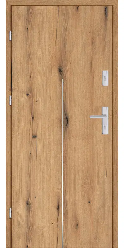 Taródi Ludas 113 szálcsiszolt acél intarziás mdf bejárati ajtó