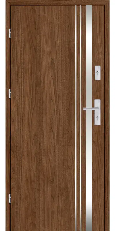Taródi Ludas 121 szálcsiszolt acél intarziás mdf bejárati ajtó