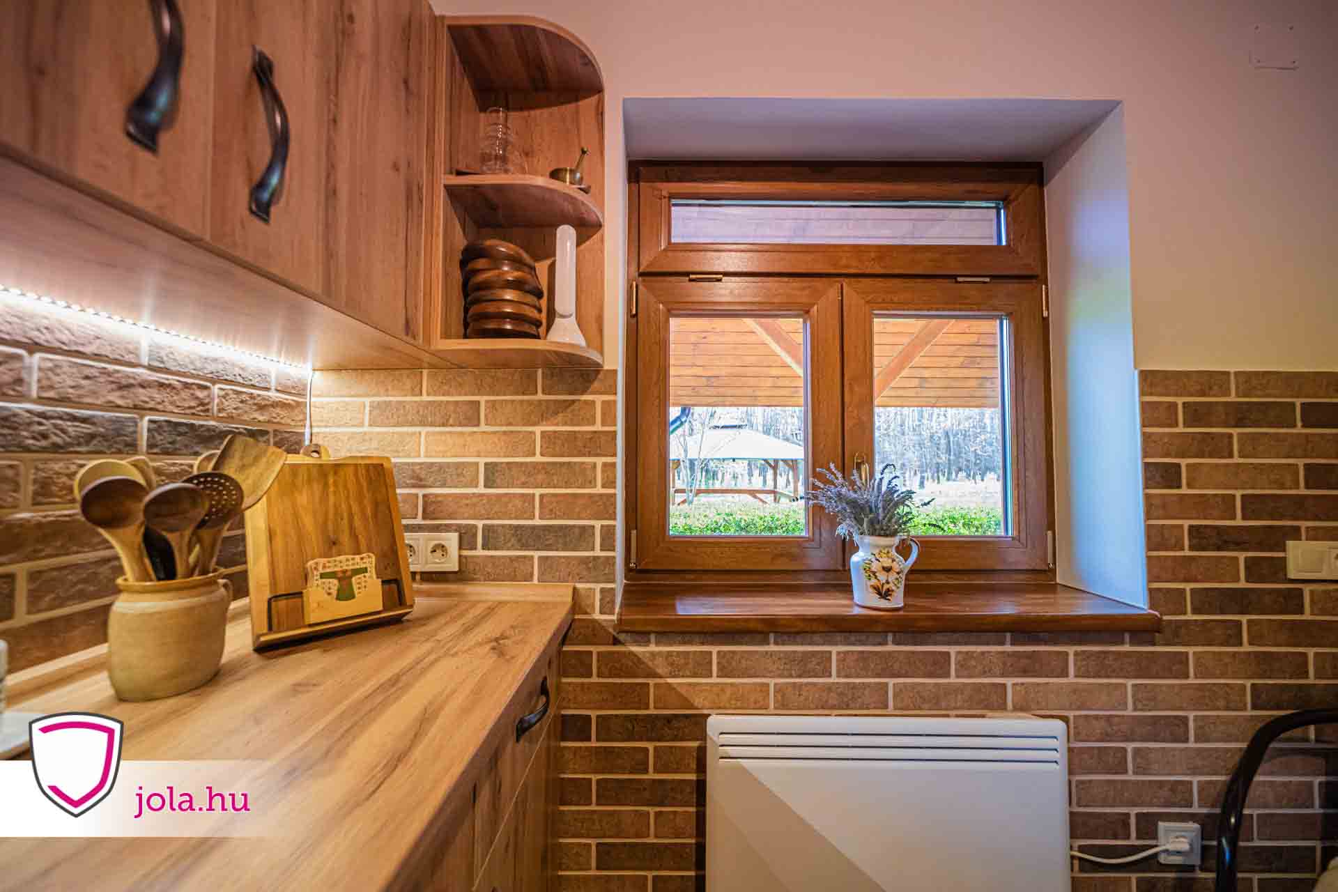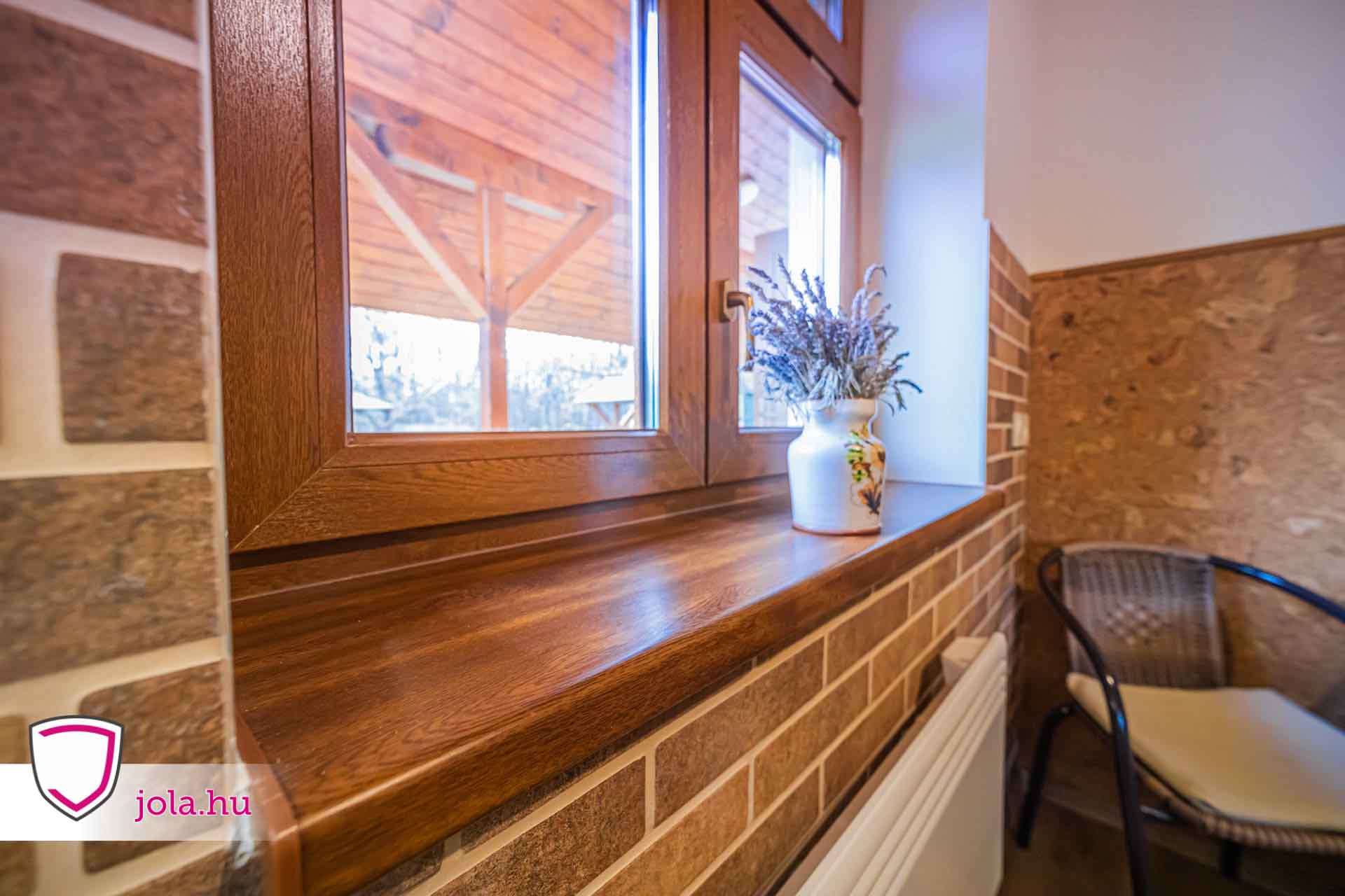 A ház kívül belül színes műanyag ablakokat kapott (Veka 76MD), 3 rétegű üvegezéssel (melegperemmel), 10 cm-es kőzetgyapot hőszigeteléssel, DÜFA CM 671 színnel (a lábazat 3105).
