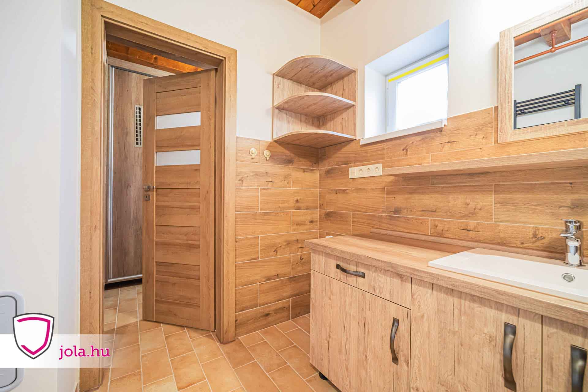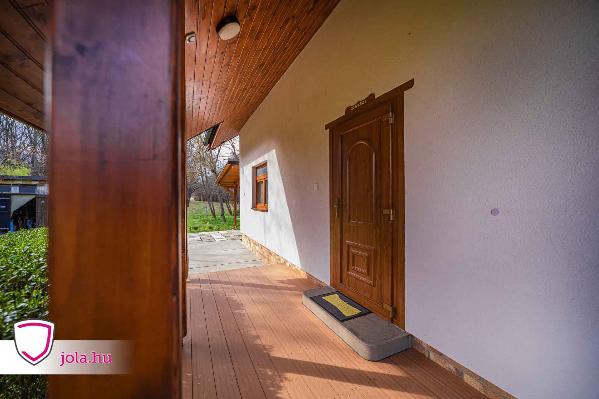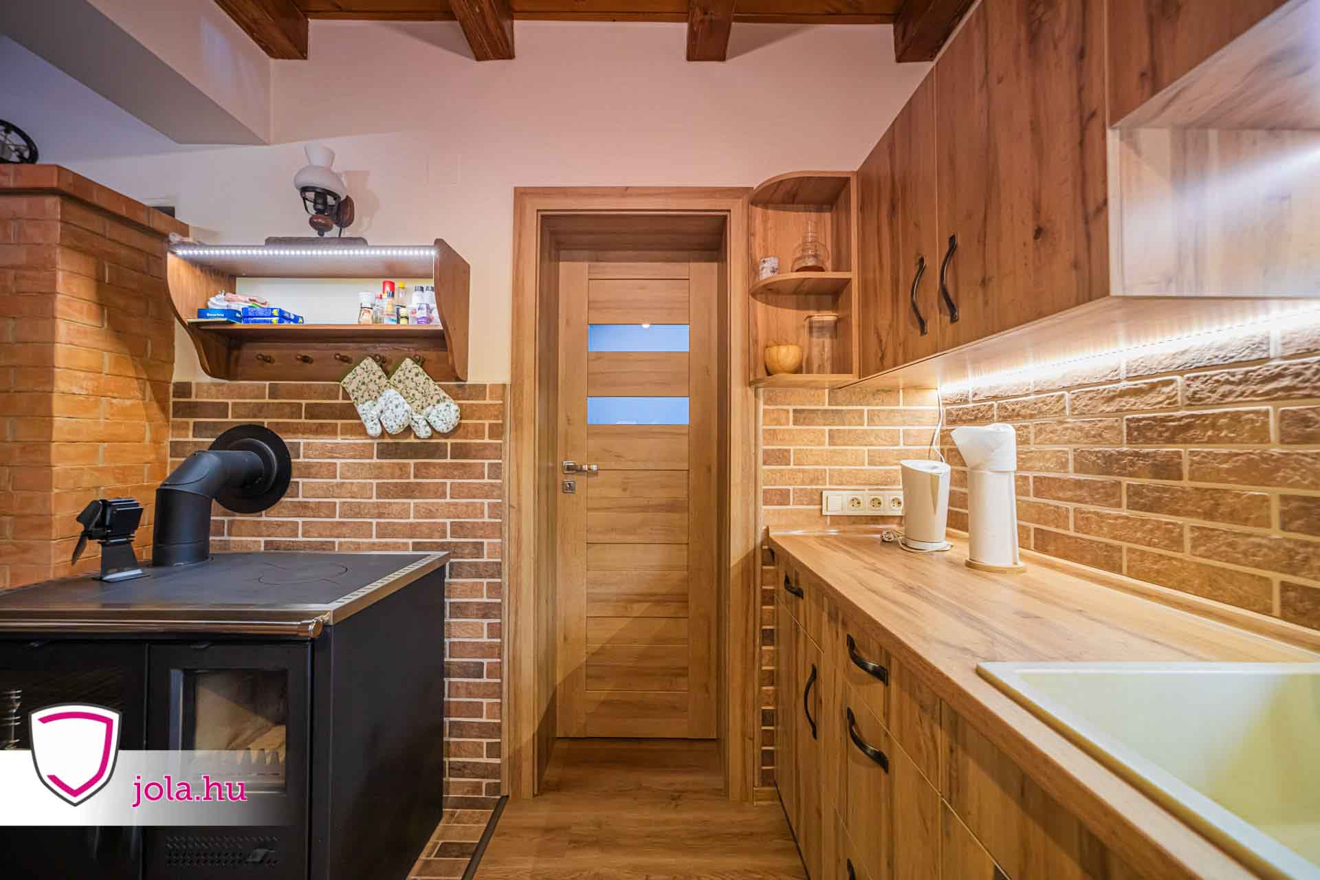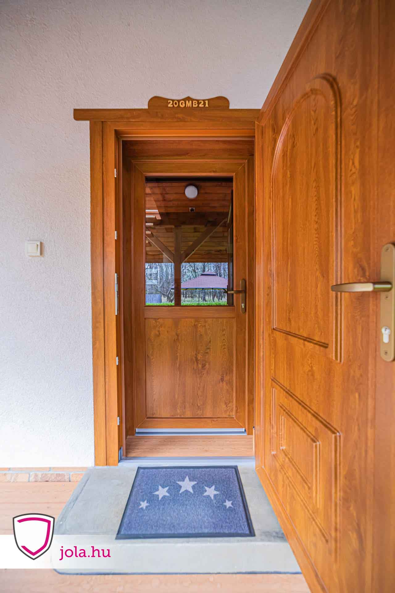 A beltéri ajtó az Acél PLUS csodás Magnolia 4 típusa, (CPL tölgy színben), a padló pedig a Krono K405 Solar tölgy és a Grabo Domino Stark SPC padlója. A terasz WPC simple, famintás tölgy.